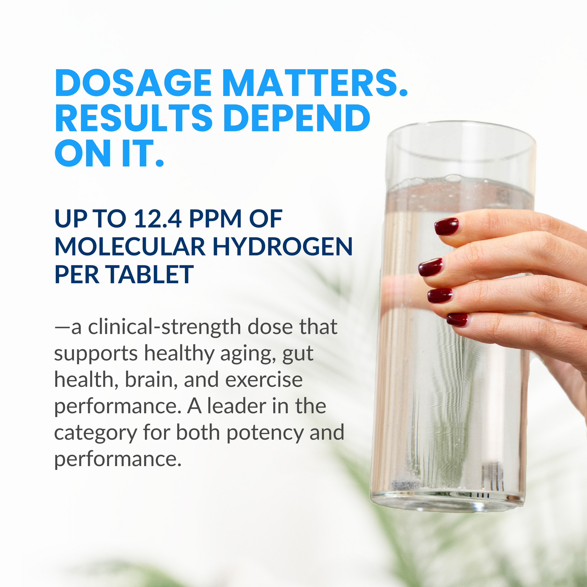 One tablet delivers up to 12.4 ppm molecular hydrogen per 500ml of water— the highest available — and supports mitochondrial function, cognitive clarity, and cellular energy, without caffeine or stimulants